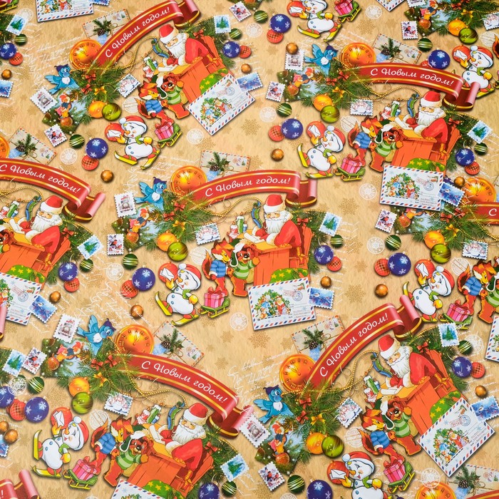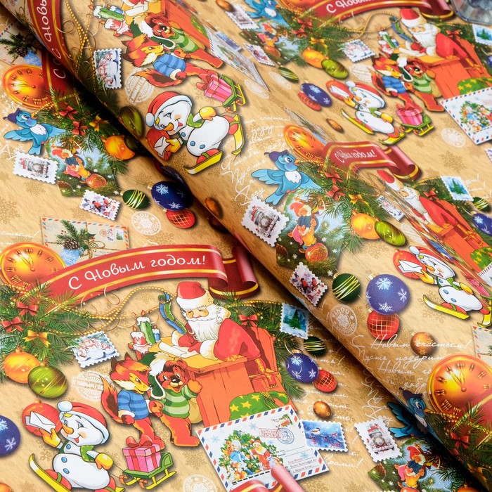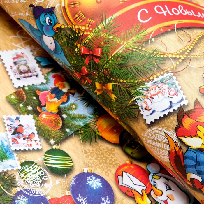 Бумага упаковочная новогодняя глянцевая двусторонняя «С Новым годом», 70×100 см