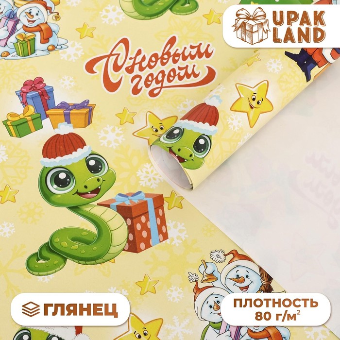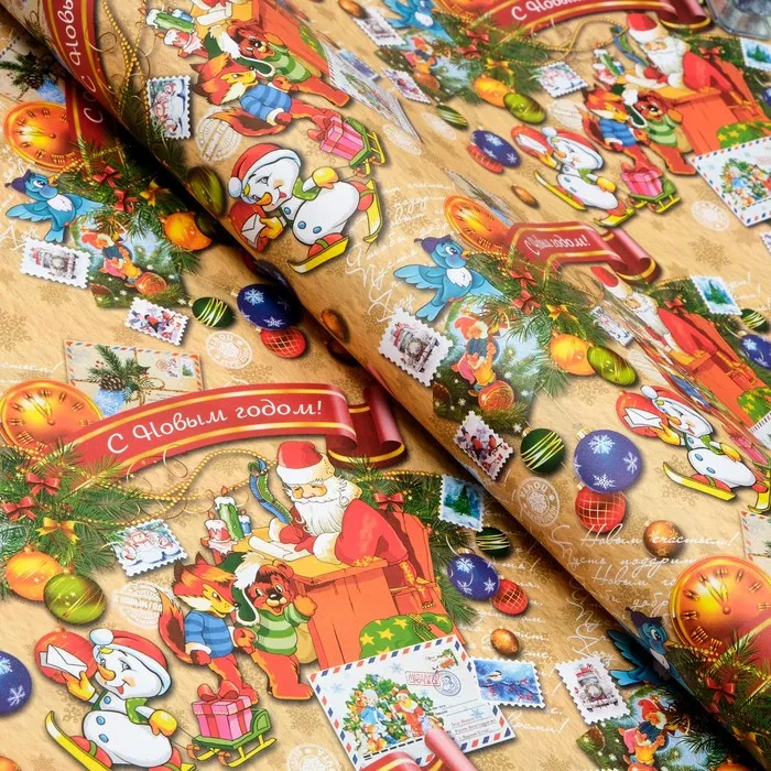 Бумага упаковочная новогодняя глянцевая двусторонняя «С Новым годом», 70×100 см — Характеристики