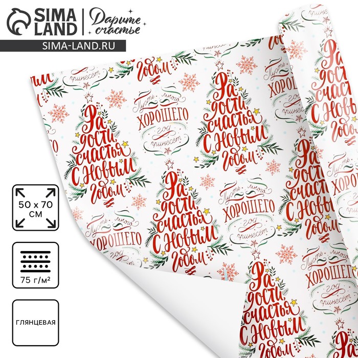 Бумага упаковочная новогодняя глянцевая двусторонняя «Снегири», 68×100 см — Характеристики