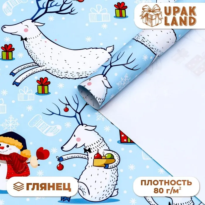 Бумага упаковочная новогодняя глянцевая «Морозный день! », 70×100 см — Характеристики