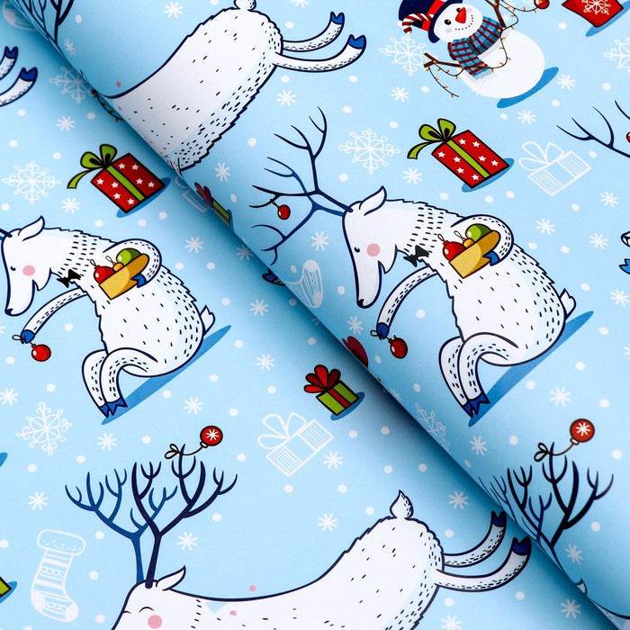 Бумага упаковочная новогодняя глянцевая «Морозный день! », 70×100 см