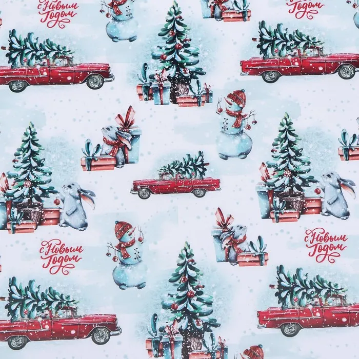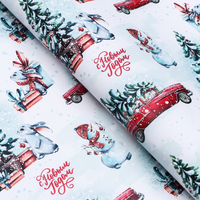 Бумага упаковочная новогодняя глянцевая «Новогодний лес», 68×100 см