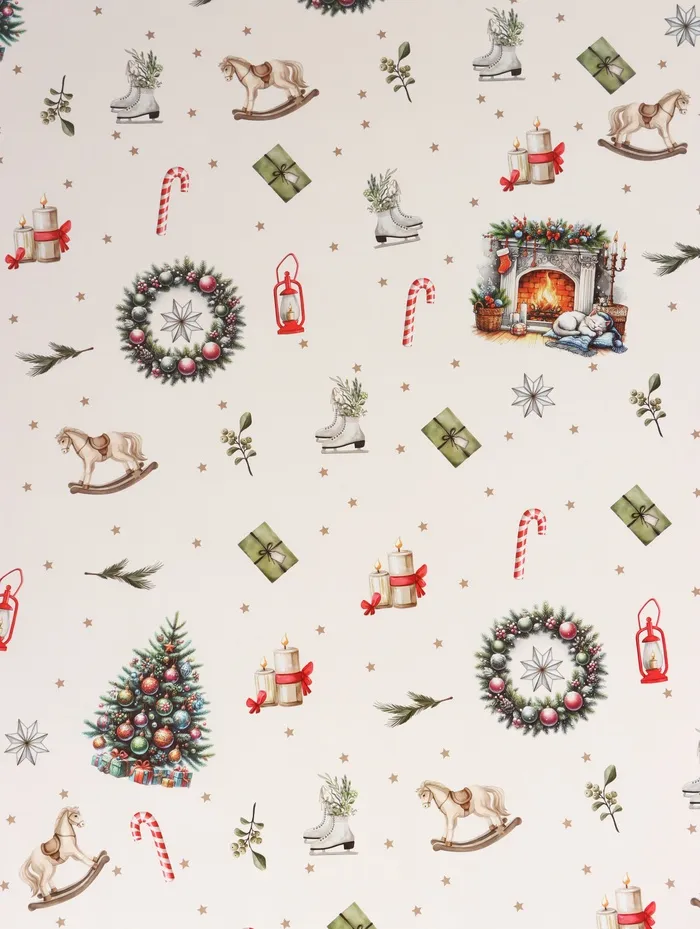 Создайте тепло новогоднего праздника! Упаковочная бумага «Новогодний уют» — это глянцевый лист с узором из шаров и символами года. Нежный бежевый фон и праздничный дизайн помогают красиво оформить подарки для близких.