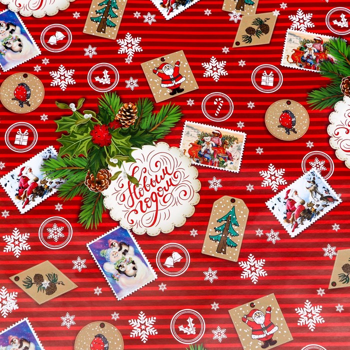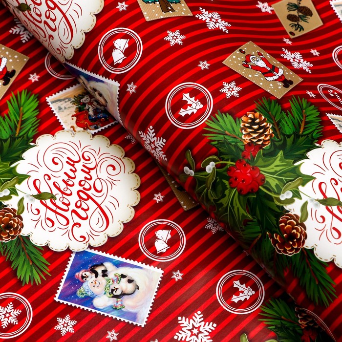 Бумага упаковочная новогодняя глянцевая «Открытки», 70×100 см