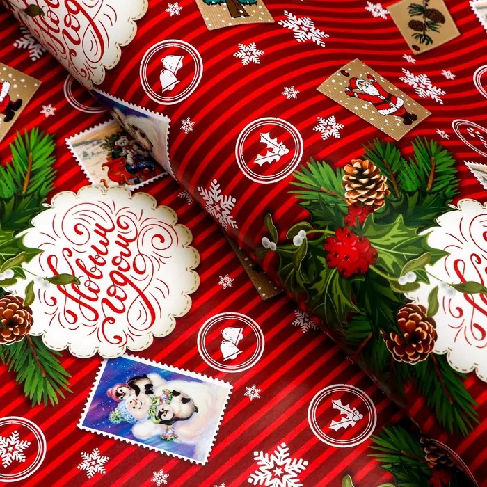 Бумага упаковочная новогодняя глянцевая «Открытки», 70×100 см — Характеристики