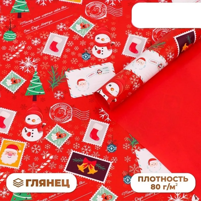 Бумага упаковочная новогодняя глянцевая «Рождественские подарки», двусторонняя, 70×100 см — Характеристики