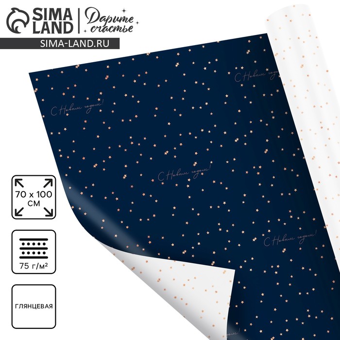 Упаковочная бумага на новый год глянцевая двухсторонняя «Новогодние звёздочки», 70 х 100 см