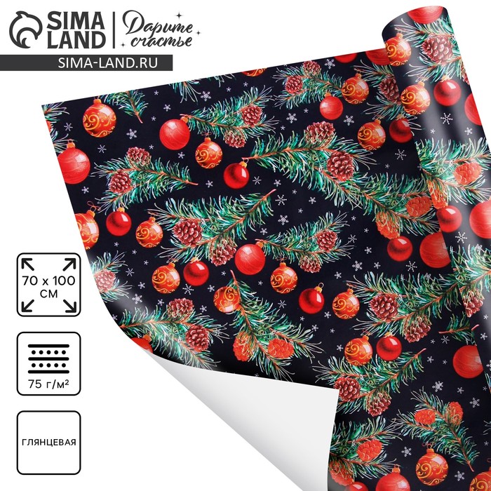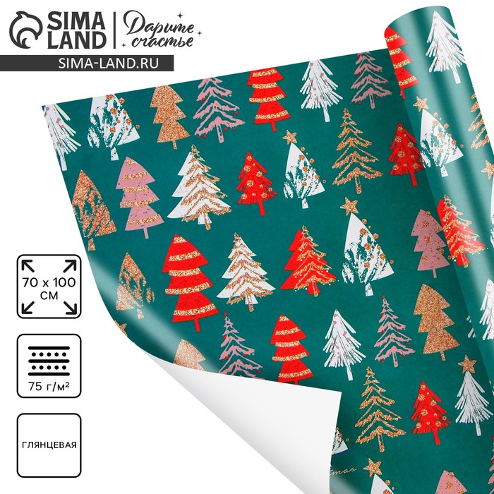 Бумага упаковочная новогодняя глянцевая «Волшебный лес», двусторонняя, 70×100 см — Характеристики