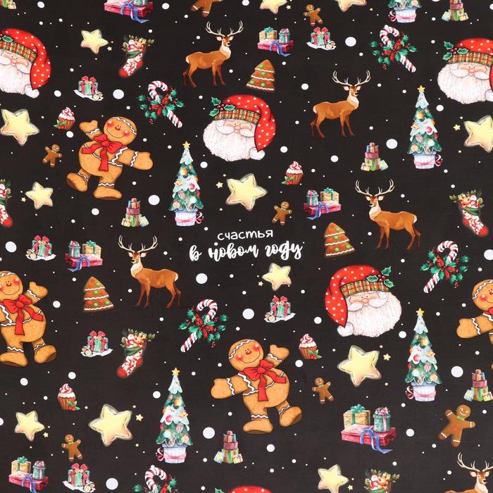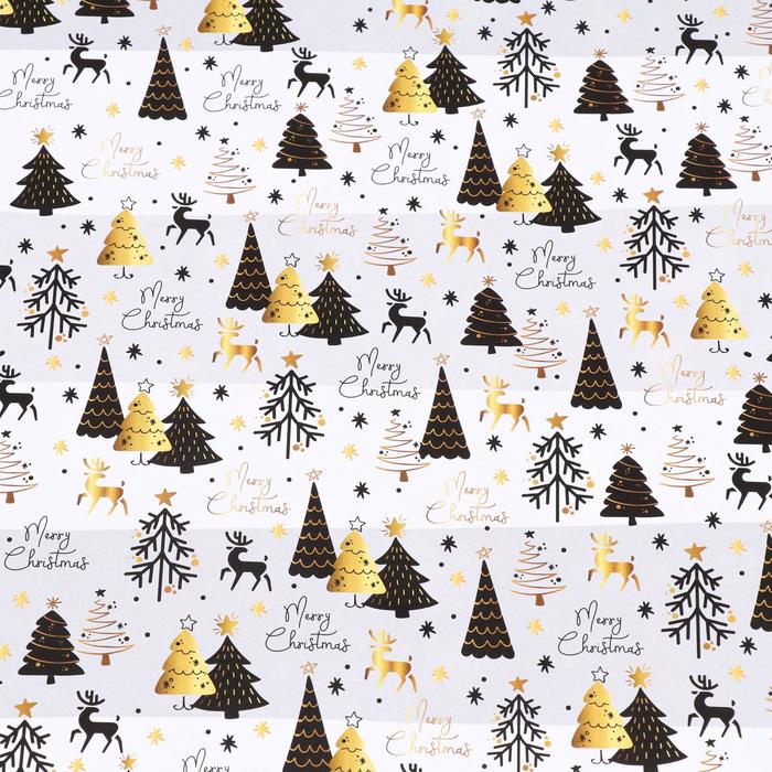 Бумага упаковочная новогодняя глянцевая «Волшебный лес», двусторонняя, 70×100 см