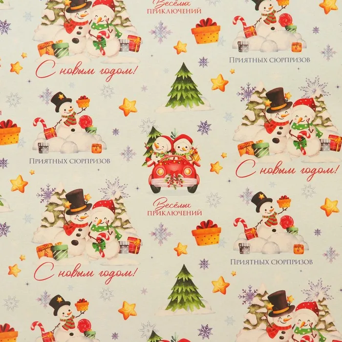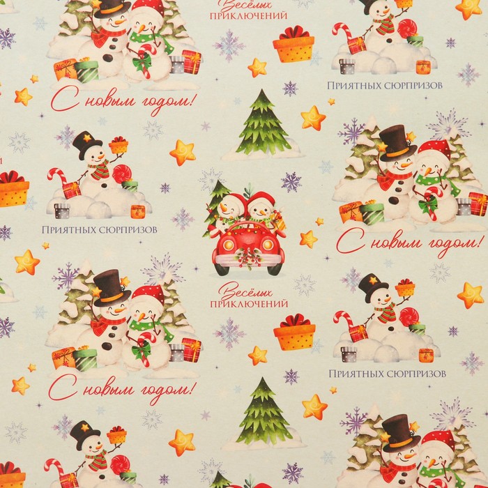 Бумага упаковочная новогодняя крафт белый «Хоровод», 50×70 см — Характеристики