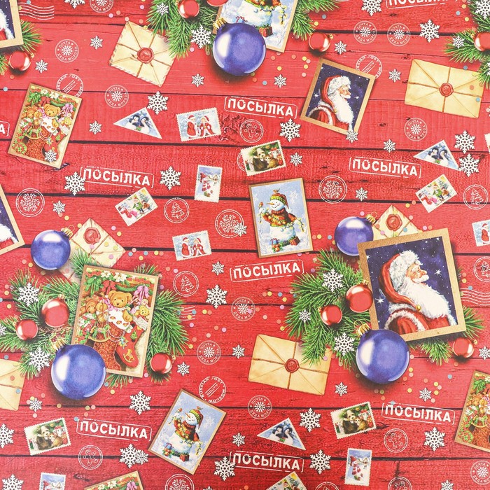 Бумага упаковочная новогодняя крафт белый «Открытки», 70×100 см — Характеристики