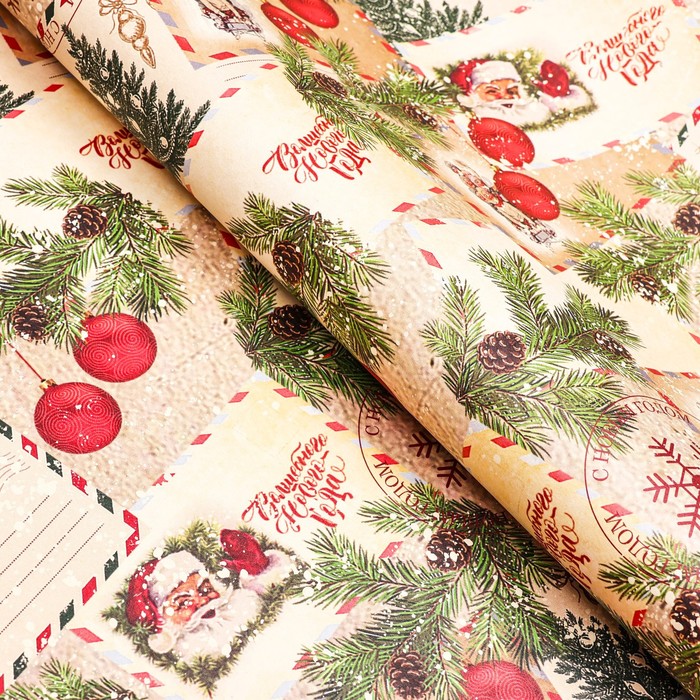 Бумага упаковочная новогодняя крафт белый "Письмо Деда Мороза!", 70 х 100 см. — Характеристики