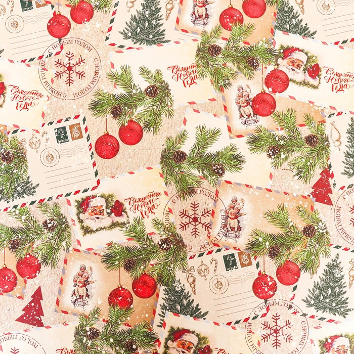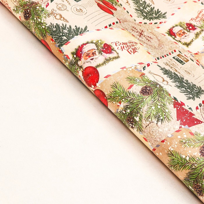 Бумага упаковочная новогодняя крафт белый "Письмо Деда Мороза!", 70 х 100 см.