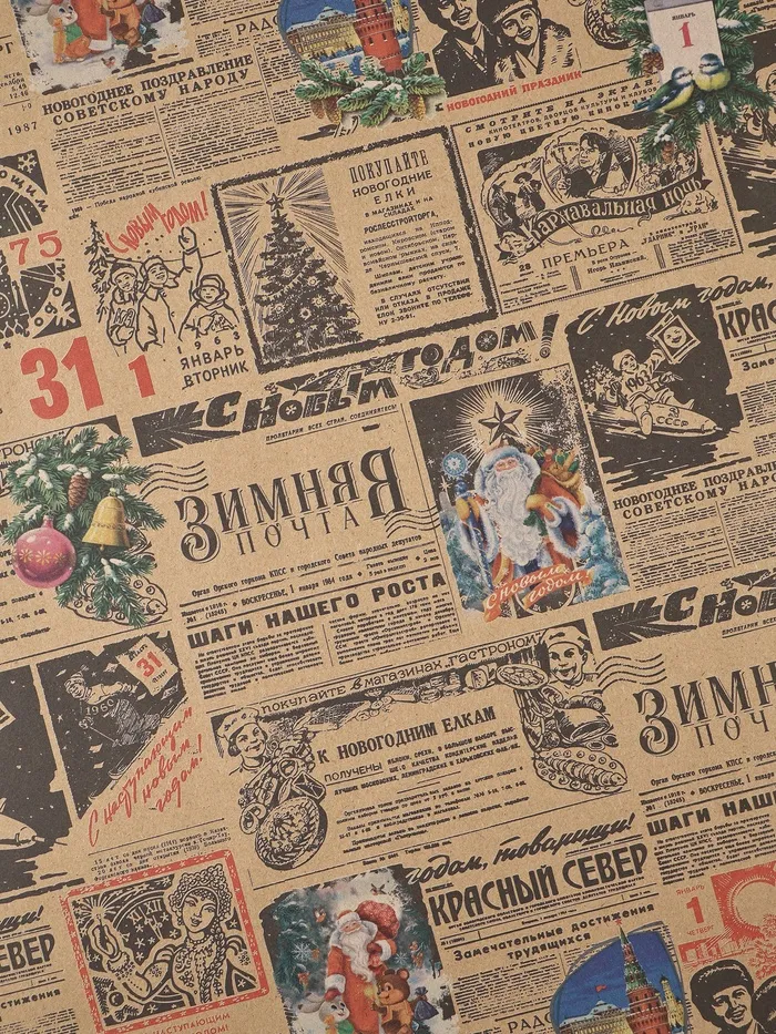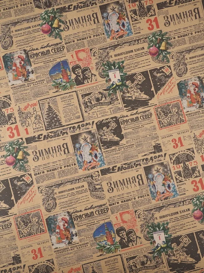 Бумага упаковочная новогодняя крафт бурый " Газета советская", 70 х 100 см. — Характеристики