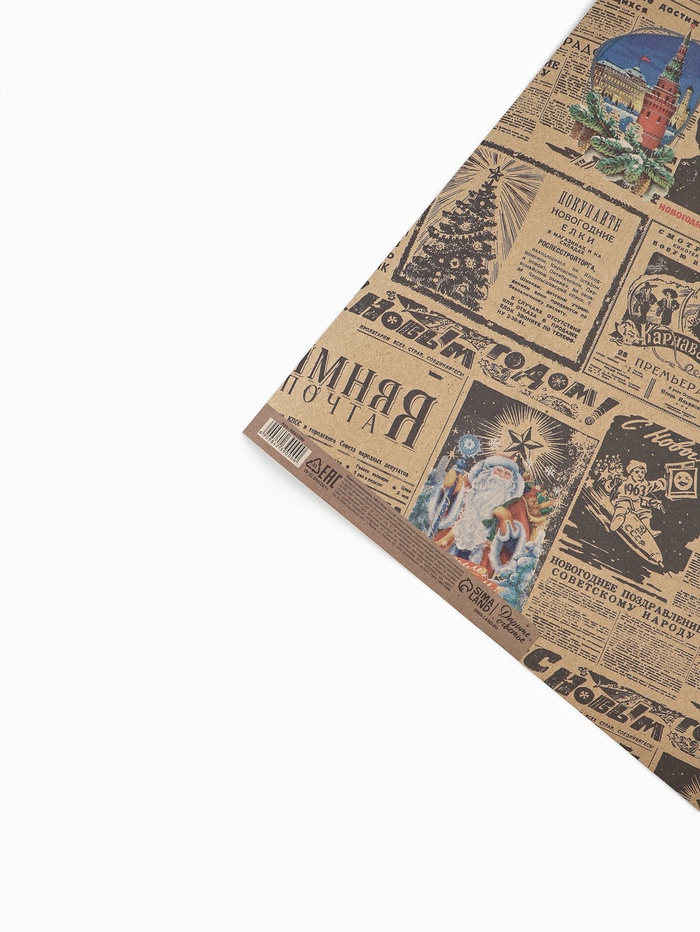 Бумага упаковочная новогодняя крафт бурый " Газета советская", 70 х 100 см. — Характеристики