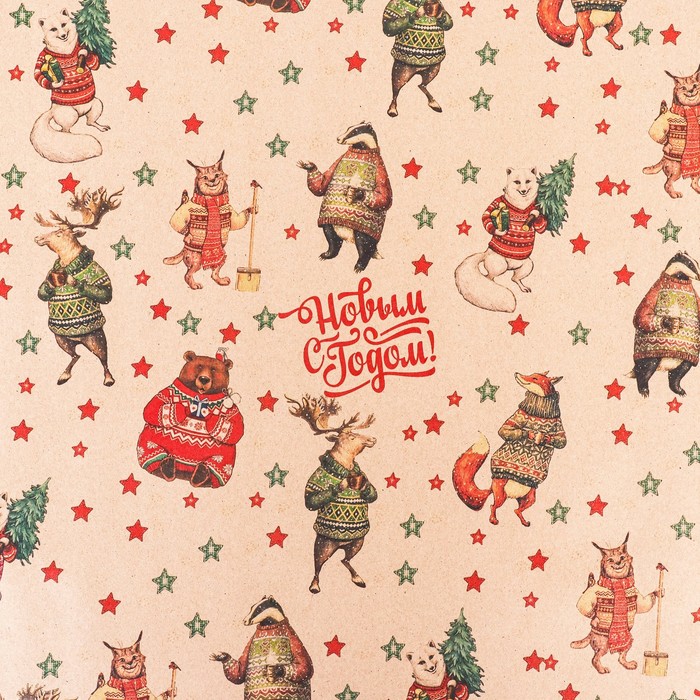 Бумага упаковочная новогодняя крафт бурый « Жители», 70×100 см — Характеристики