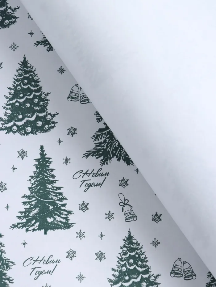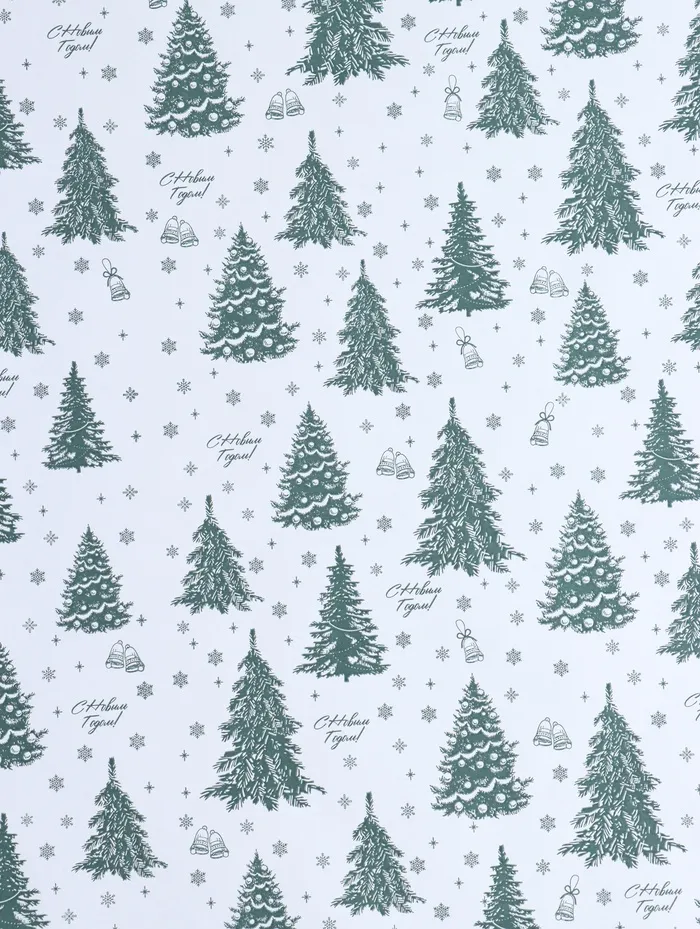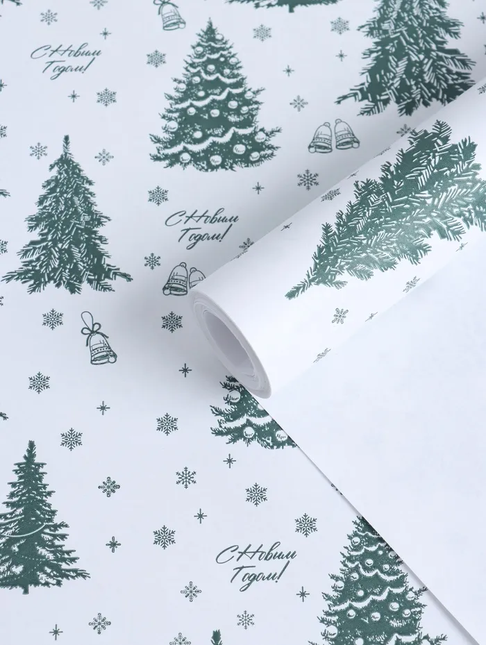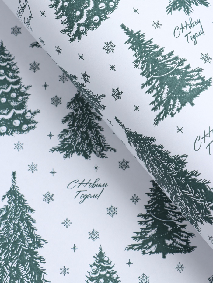 Современный подход к праздничной упаковке: Эта бумага подходит для тех, кто ценит лаконичность и стиль. Она особенно хорошо смотрится в сочетании с монохромным декором, серебристыми или чёрными лентами. «Ёлки» — это выбор для создания подарков с акцентом на графичность и современное восприятие зимнего праздника.