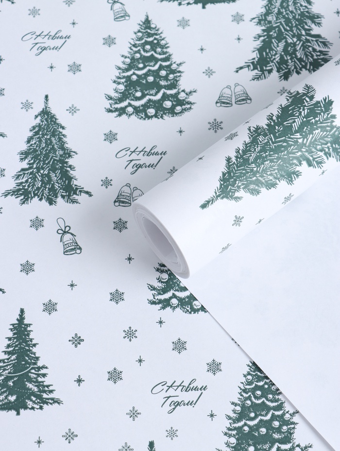 Бумага упаковочная новогодняя крафт, «Ёлки», на белом 75 г/м² 0.72×10 м — Характеристики
