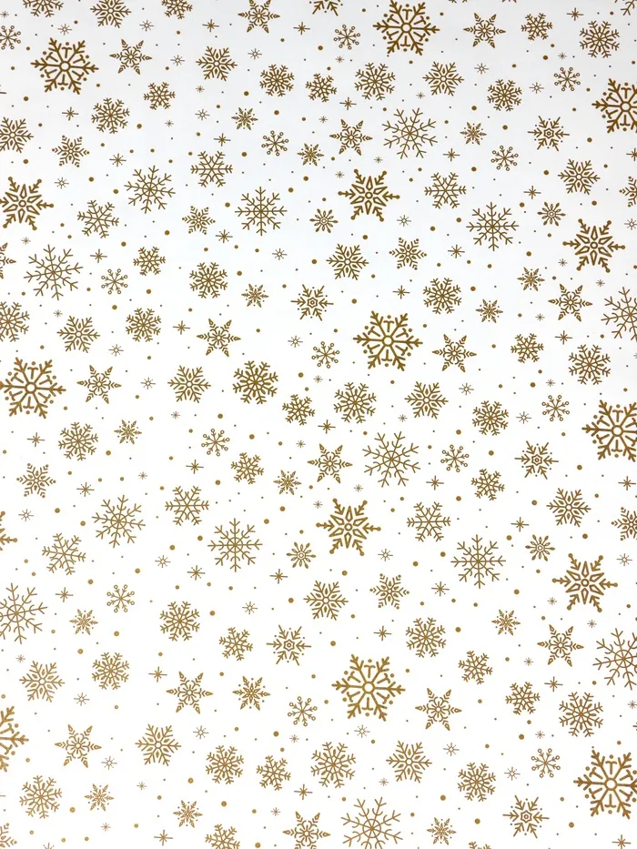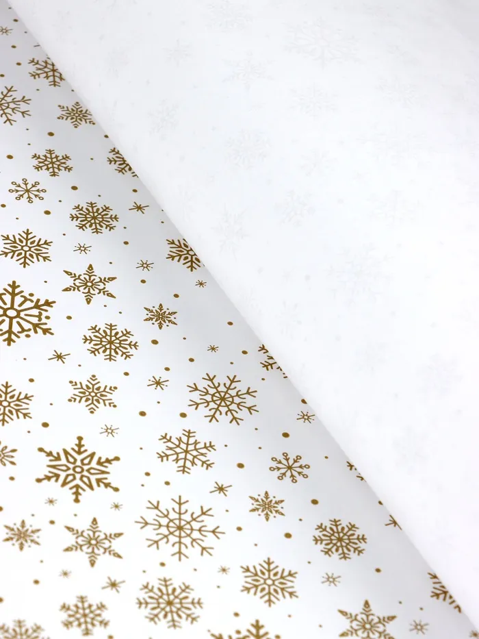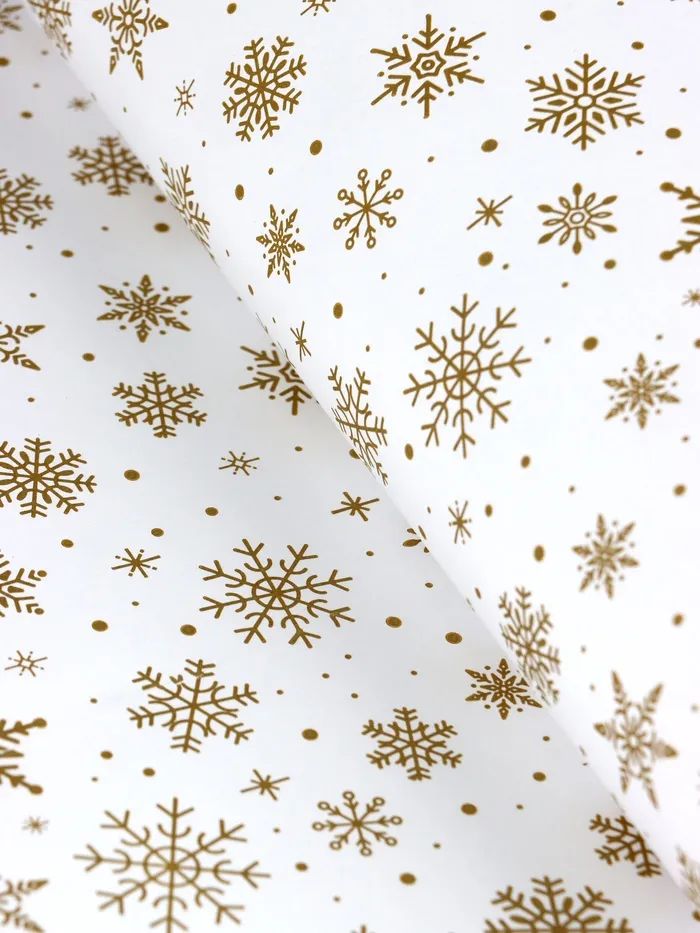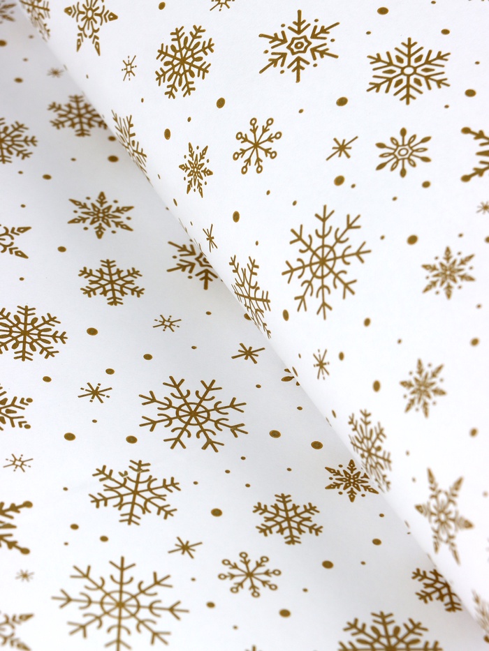 - Универсальный зимний дизайн: Белый фон с золотистыми снежинками подходит для новогодних подарков всем возрастам. Рисунок создает праздничное настроение без привязки к конкретному символу года.