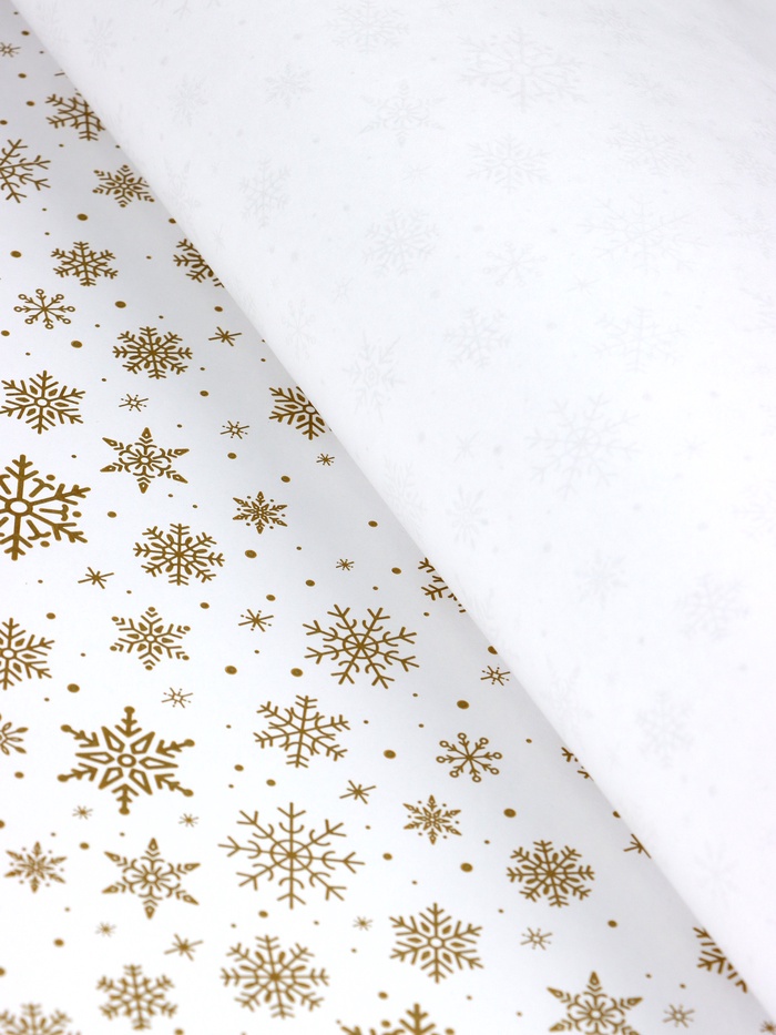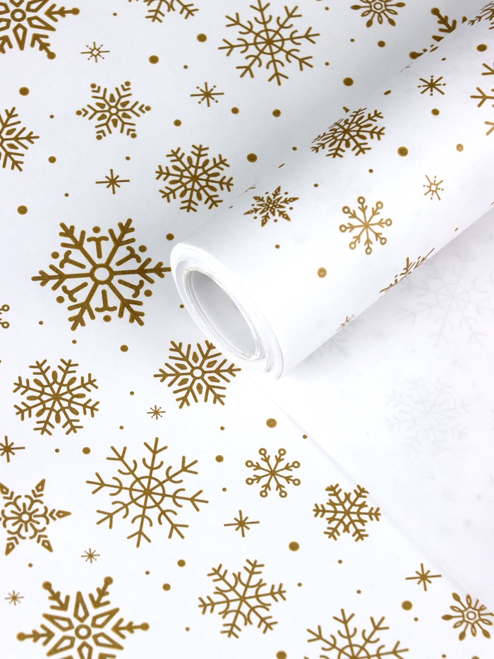Добавьте индивидуальности подаркам: Эта бумага превращает даже простой сувенир в продуманный презент. Она помогает создать целостный новогодний образ для подарка и показывает внимание к деталям. «Снежинки» — для тех, кто ценит стильное и быстрое решение для упаковки.