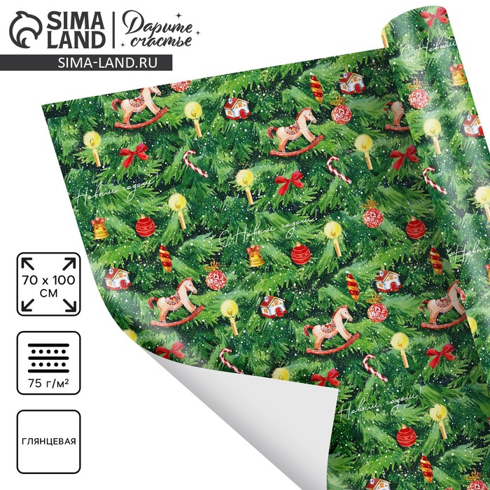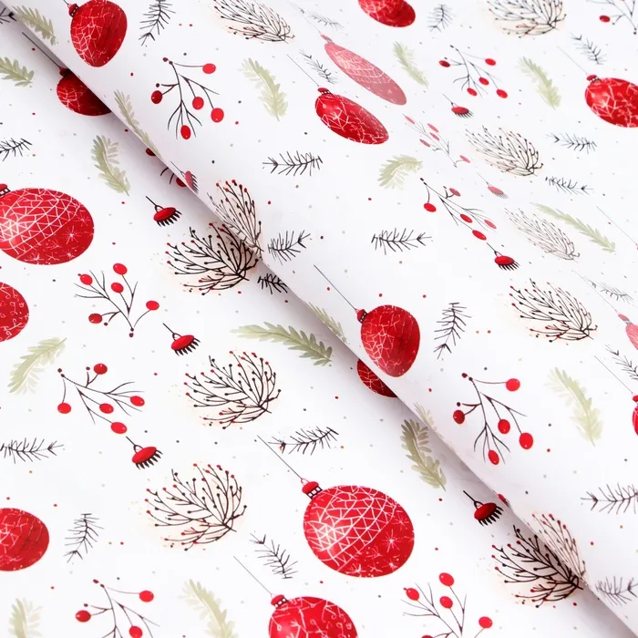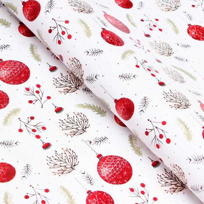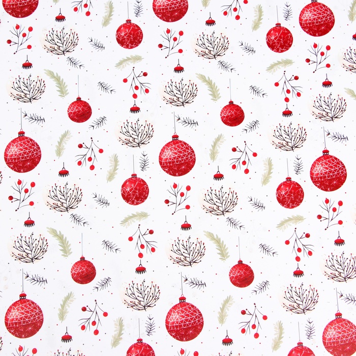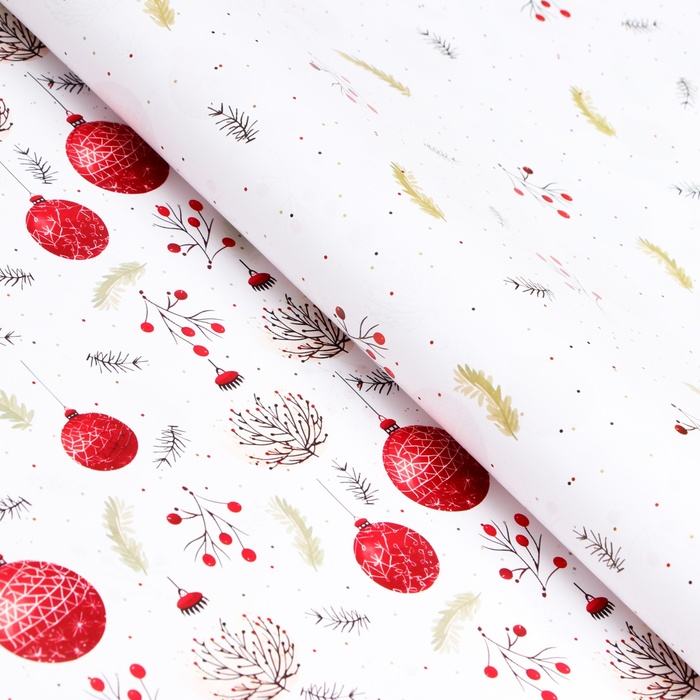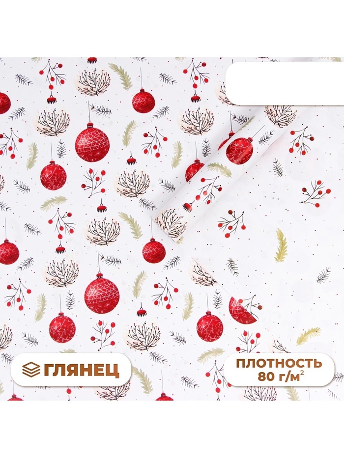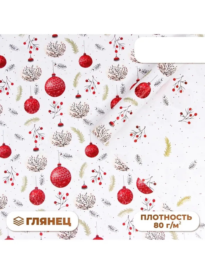 Бумага упаковочная новогодняя «Красные шарики», глянец, двусторонняя, 80 г/м² , 70×100 см — Характеристики