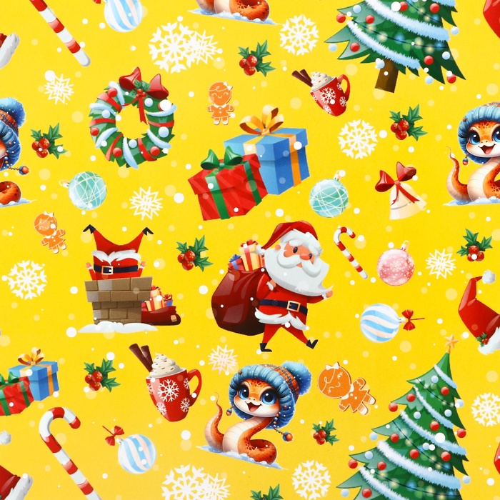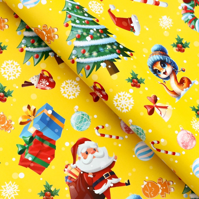 Бумага упаковочная новогодняя «Подарки и змейка Символ года», глянец, 80 г/м² , 50×70 см