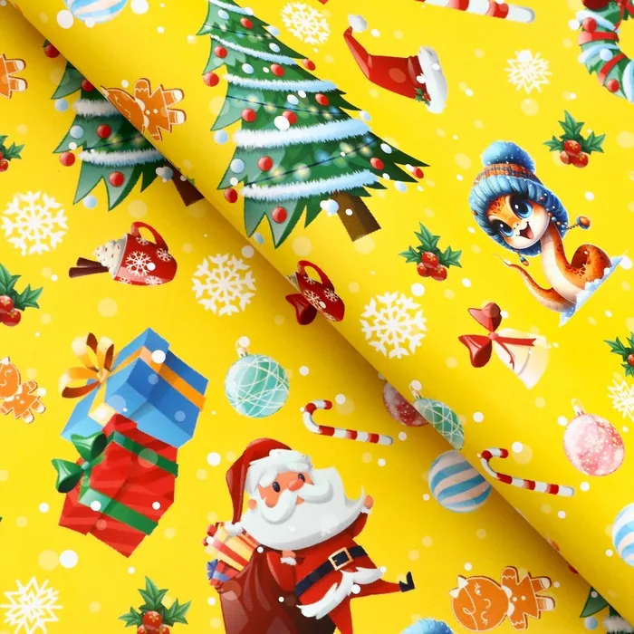 Бумага упаковочная новогодняя «Подарки и змейка Символ года», глянец, 80 г/м² , 50×70 см — Характеристики