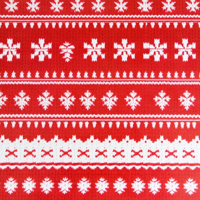 Она выполнена в ярких цветах с новогодними мотивами, такими как снежинки, елочные игрушки и Дед Мороз.