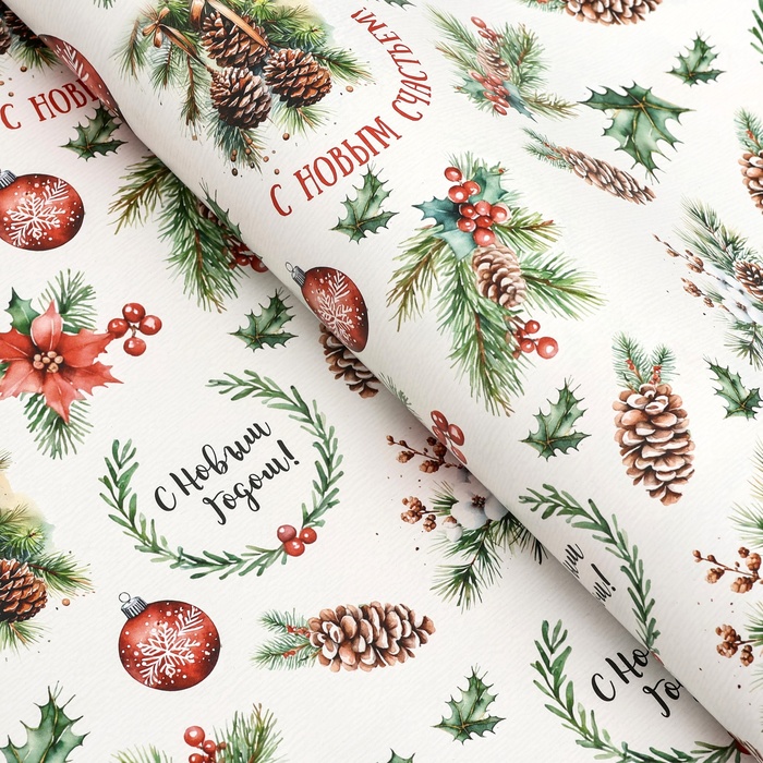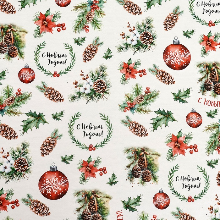 Бумага упаковочная новогодняя «Шишки», глянец, 80 г/м² , 70×100 см — Характеристики