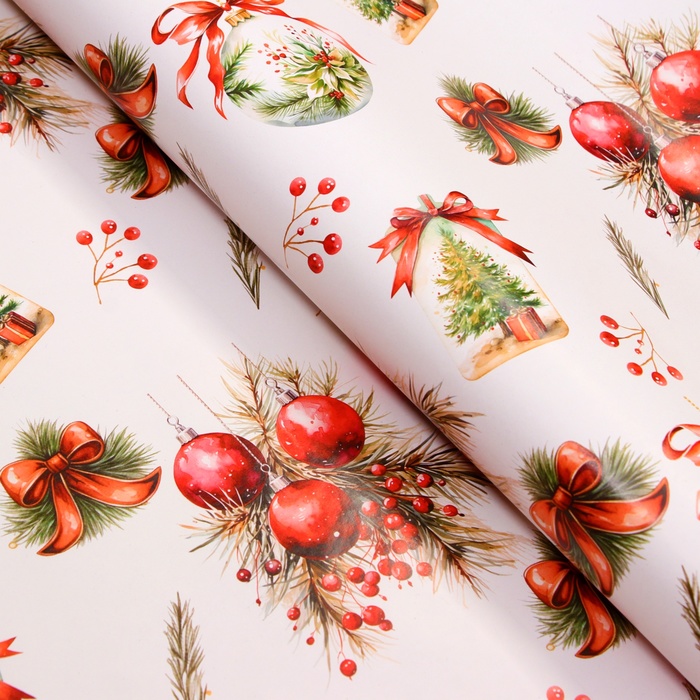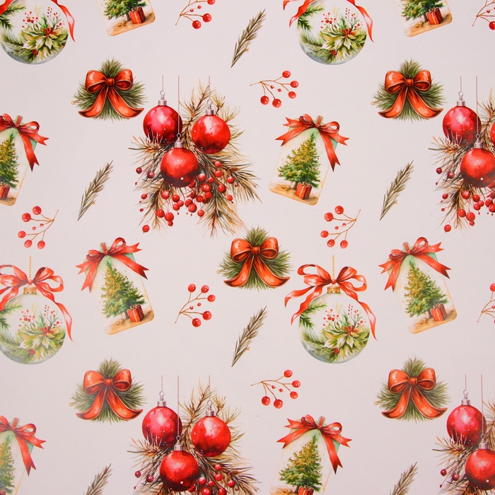 Бумага упаковочная новогодняя «Украшения», глянец, 1 лист, 80 г/м² , 70×100 см — Характеристики