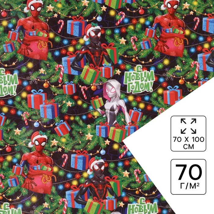 Бумага упаковочная «Новый год» 70 х 100 см, Человек паук — Характеристики