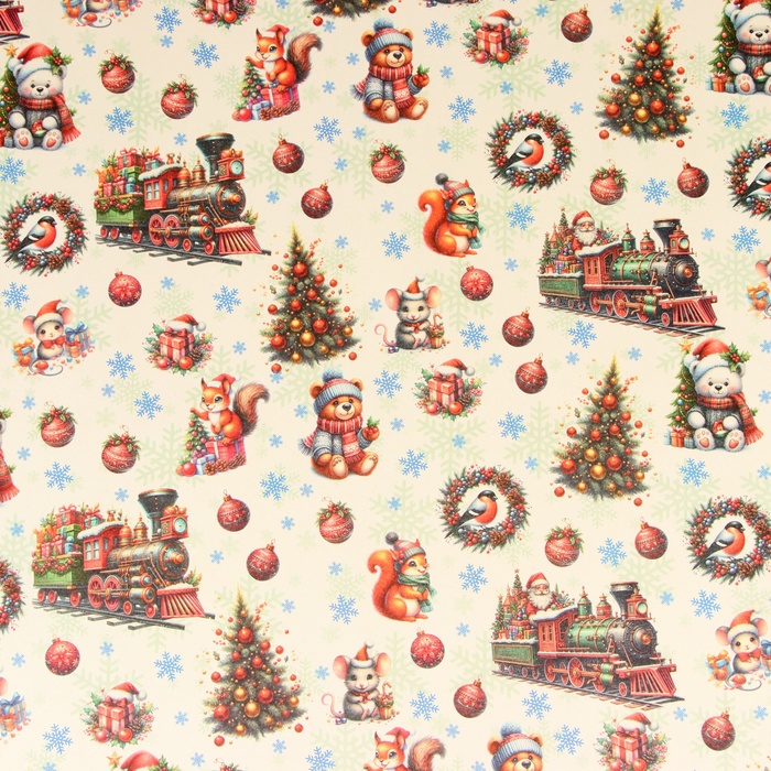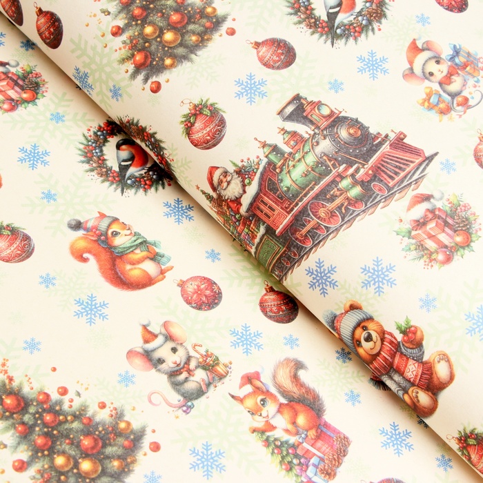 Бумага упаковочная «Паровоз подарков», белый крафт, 1 лист, 80 г/м² , 72×100 см