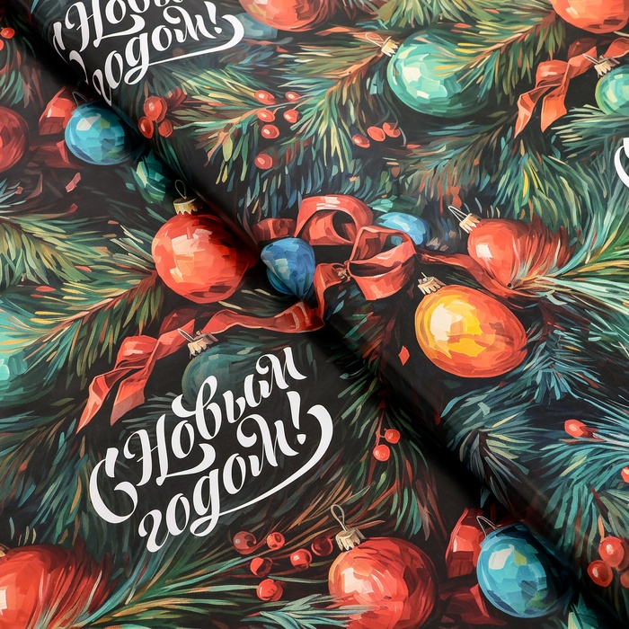 Бумага упаковочная «С Новым Годом», глянец, 80 г/м² , 1 лист, 70×100 см — Характеристики