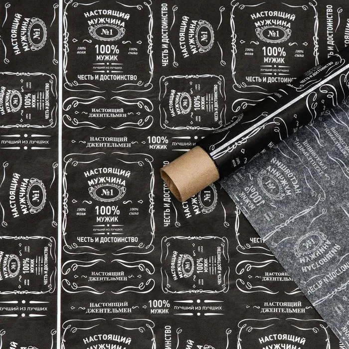 Бумага упаковочная тишью "100% мужик", 0.55×10 м — Характеристики