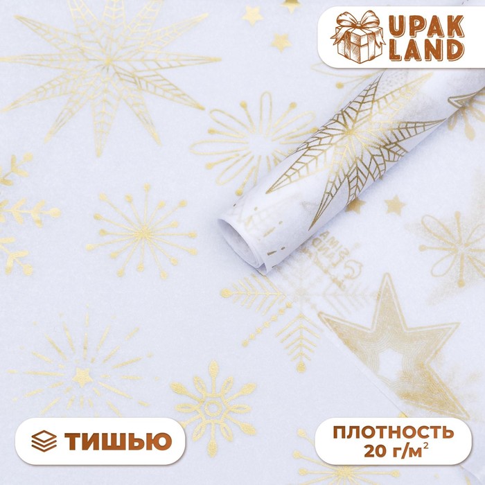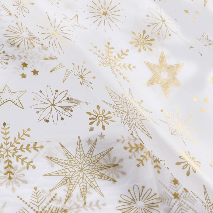 Бумага упаковочная тишью, новогодняя упаковка "Золотые снежинки",50 х 66 см. — Характеристики