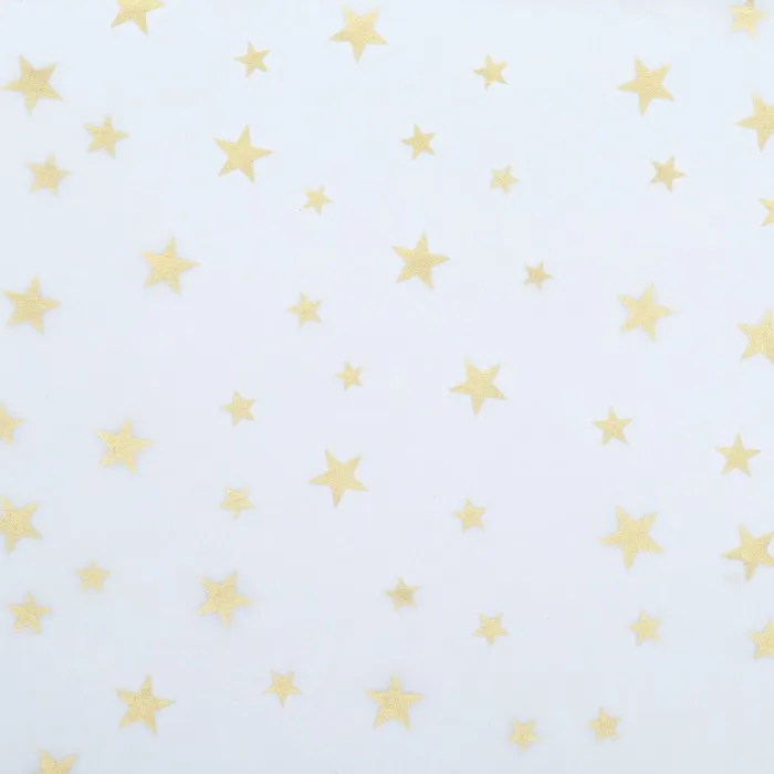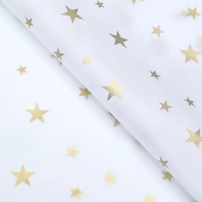 - Односторонний рисунок: Золотые звезды на белом фоне выглядят нарядно и стильно. Узор не выцветает и не пачкает руки.