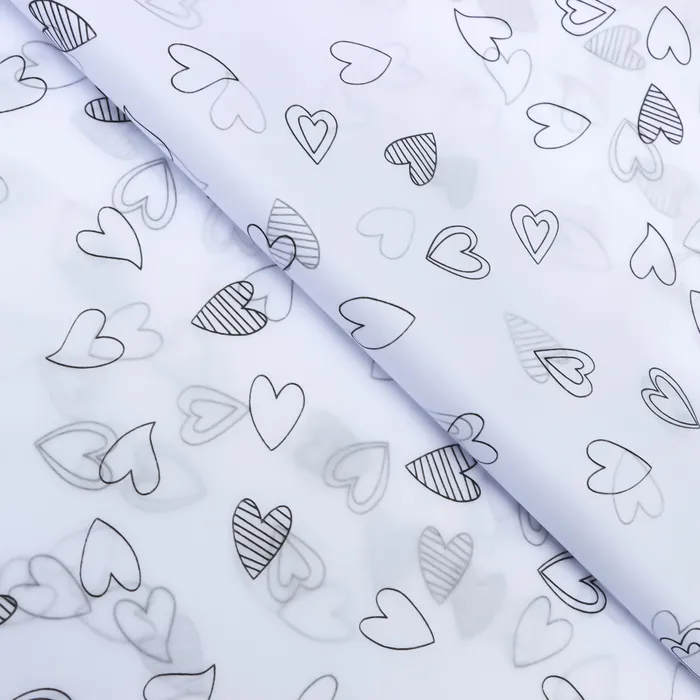 Бумага упаковочная тишью, «Сердечки», 50 см × 70 см 17 грамм, белая