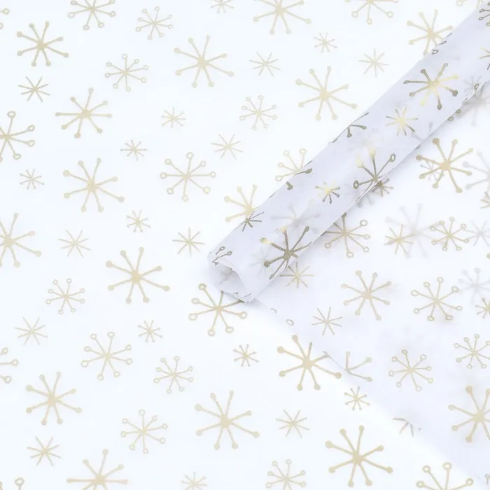 Тонкая упаковочная бумага, тишью. Может использоваться в качестве упаковочного материала для различных предметов: посуды, обуви, одежды, подарков, сувениров (просто заверните), как наполнитель коробочек (при комкании ложится красивыми складками и заполняет свободное пространство), для изготовления межстраничных вкладок в фотоальбомах, во флористике для составления и декорирования букетов и т.д.