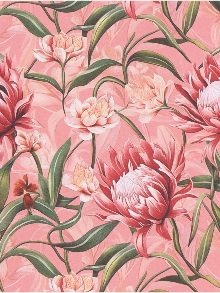 Бумага упаковочная крафт «Пионы», красный, 0.72×10±5% м, 60 г