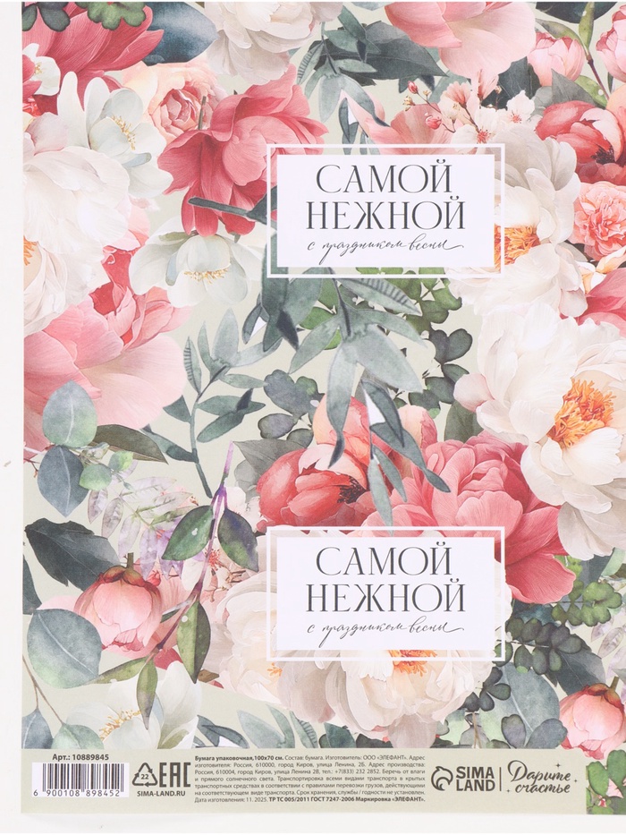 Бумага упаковочная «Цветы», 70 × 100 см — Характеристики