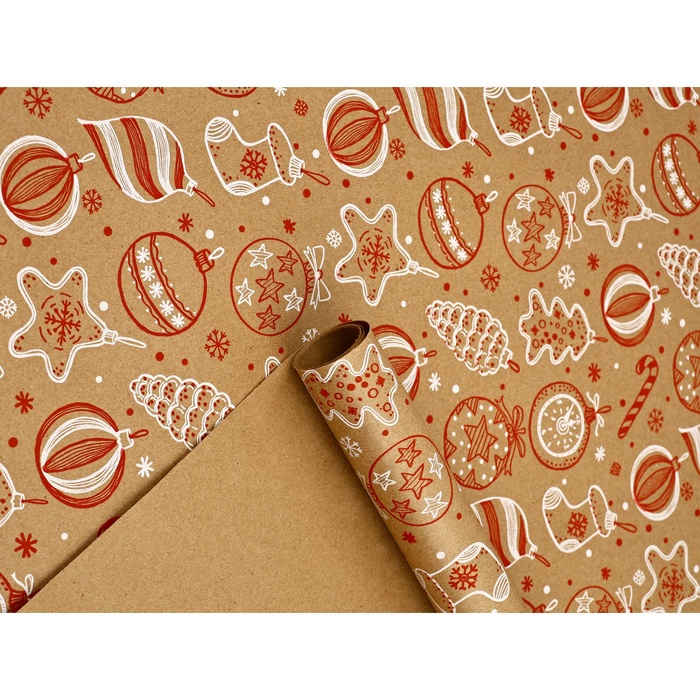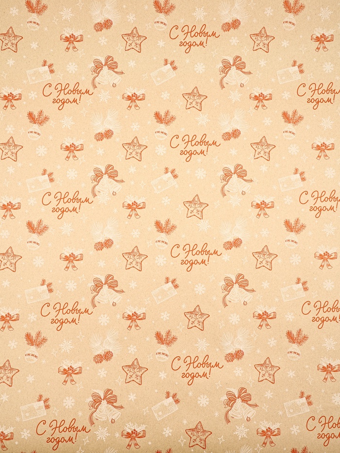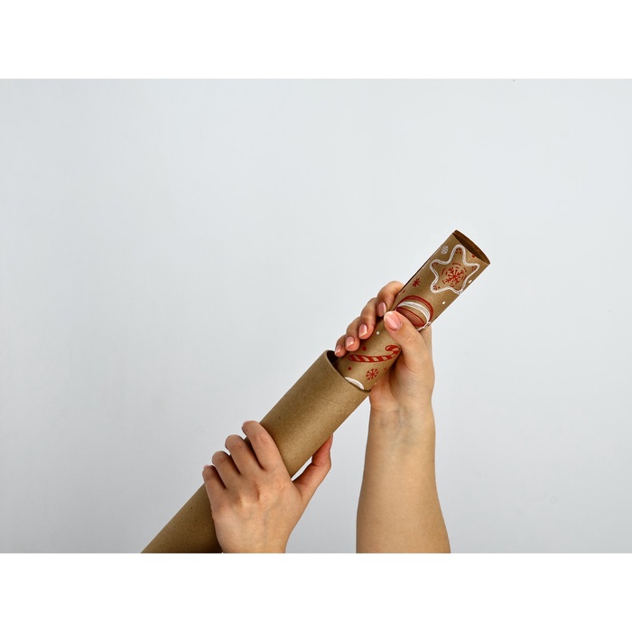 Бумага в тубусе крафтовая бурая в рулоне «С Новым годом», 0.68×7 м — Характеристики