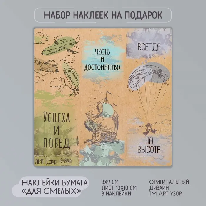Бумажная наклейка для декора «Для смелых», для творчества, открыток, 3×9 см, лист 10×10 см — Характеристики