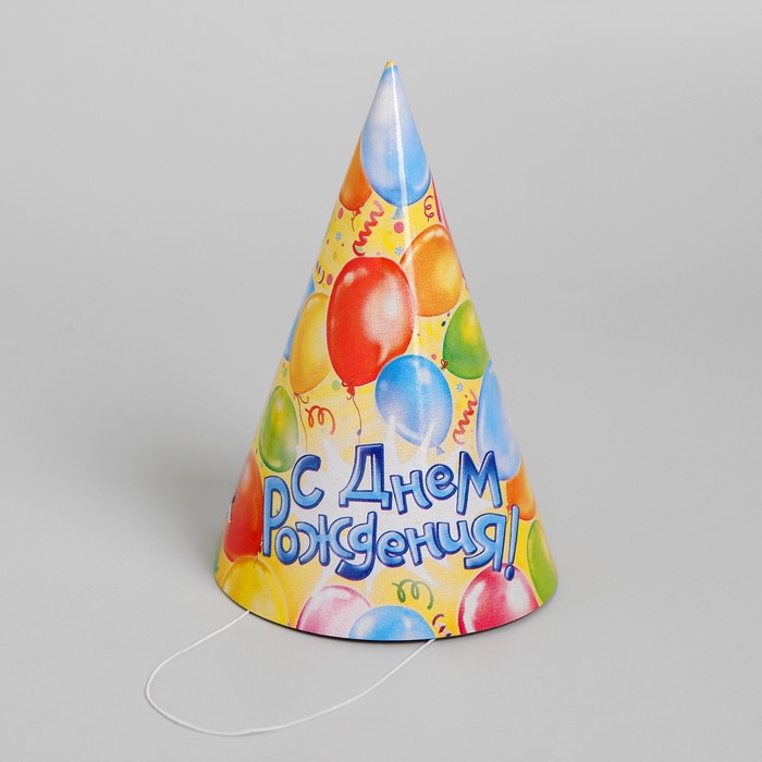 Бумажные колпаки «С днём рождения! Шарики», набор 6 шт., 16 см — Характеристики