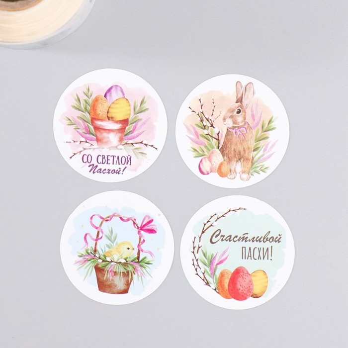 Бумажные наклейки в рулоне «Арт Узор. Светлая Пасха», набор 252 шт., для декора, d=3.8 см
