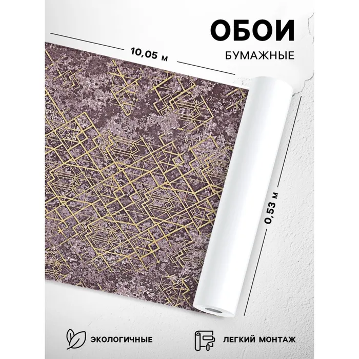 Стильное и практичное решение для вашего интерьера. Ширина рулона составляет 0,53 м, а длина – 10,05 м, что позволит вам эффективно оклеить помещение. Раппорт 53 см означает, что повторяющийся узор на обоях имеет шаг в 53 см, что нужно учитывать при раскрое и совмещении полотен.