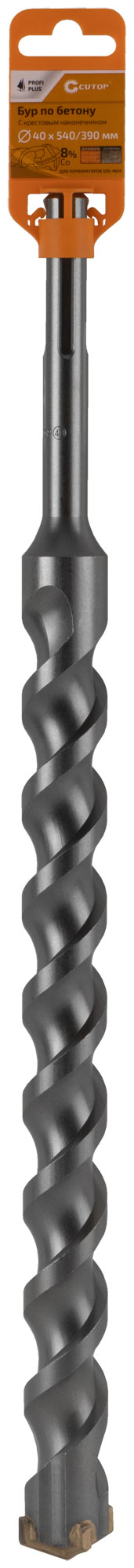 Бур CUTOP Profi Plus оснащён крестовым наконечником, изготовленным из сплава карбида вольфрама с добавлением кобальта 8%, что обеспечивает высокую точность и долговечность. Спиральная часть выполнена из инструментальной стали и подвергнута термической обработке для повышения прочности.