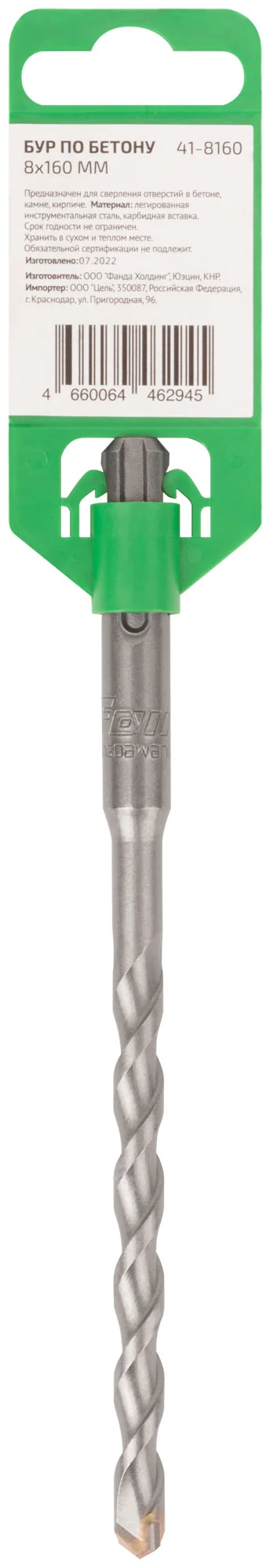 Бур изготовлен из легированной инструментальной стали и оснащен карбидной вставкой, что обеспечивает долгий срок службы и высокую эффективность при работе с твердыми материалами. Хвостовик SDS-Plus гарантирует прочное крепление в патроне и минимизацию вибрации.