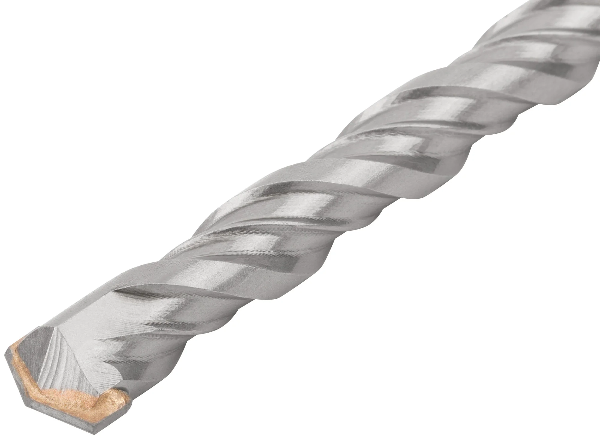 Этот бур оснащен карбидным наконечником с добавлением кобальта 6%, что гарантирует долговечность и стабильность диаметра в процессе работы. Двойная спираль позволяет сохранять постоянную скорость бурения, а легированная инструментальная сталь с добавлением хрома обеспечивает высокую износостойкость.
