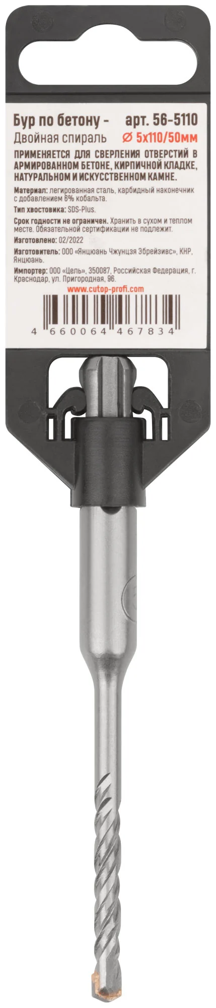 Бур оснащен карбидным наконечником с добавлением 6% кобальта, что гарантирует длительное использование без изменения диаметра. Двойная спираль позволяет поддерживать постоянную скорость бурения, а хвостовик SDS-Plus обеспечивает надежную фиксацию в инструменте.