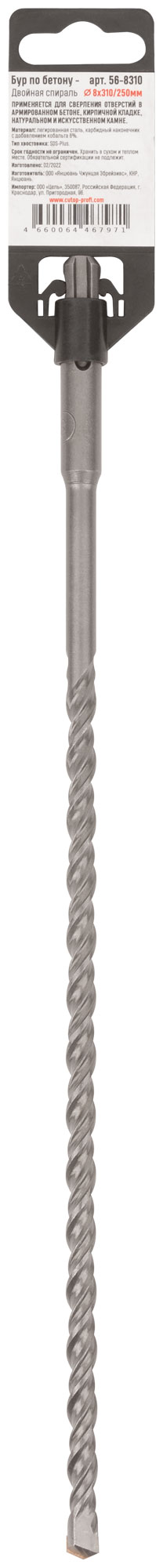 Основные преимущества этого бура - долговечность, высокая производительность и универсальность в применении. Хвостовик SDS-Plus гарантирует надежную фиксацию в инструменте, что позволяет работать с максимальной эффективностью.